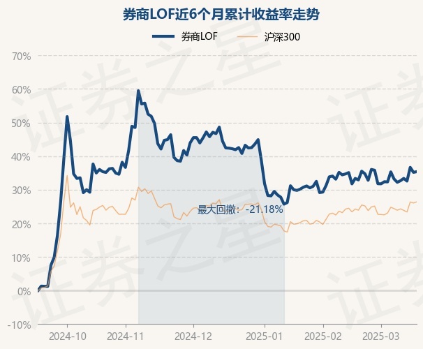 证券之星消息,3月18日,券商LOF最新单位净值为1.1239元,累计净值为0.6517元,较前一交易日上涨0.14%。历史数据显示该基金近1个月上涨2.75%,近3个月下跌4.81%,近6个月上涨35.36%,近1年上涨19.69%。该基金近6个月的累计收益率走势如下图: