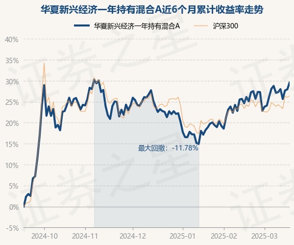 证券之星消息,3月18日,华夏新兴经济一年持有混合A最新单位净值为0.9856元,累计净值为0.9856元,较前一交易日上涨1.25%。历史数据显示该基金近1个月上涨3.94%,近3个月上涨5.13%,近6个月上涨29.55%,近1年上涨17.75%。该基金近6个月的累计收益率走势如下图: