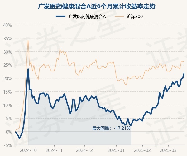 证券之星消息,3月18日,广发医药健康混合A最新单位净值为0.4956元,累计净值为0.4956元,较前一交易日上涨1.56%。历史数据显示该基金近1个月上涨11.9%,近3个月上涨11.77%,近6个月上涨21.86%,近1年上涨8.33%。该基金近6个月的累计收益率走势如下图: