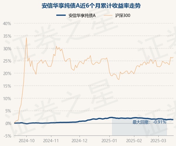 证券之星消息,3月18日,安信华享纯债A最新单位净值为1.0474元,累计净值为1.0754元,较前一交易日上涨0.02%。历史数据显示该基金近1个月下跌0.41%,近3个月下跌0.12%,近6个月上涨1.41%,近1年上涨3.3%。该基金近6个月的累计收益率走势如下图: