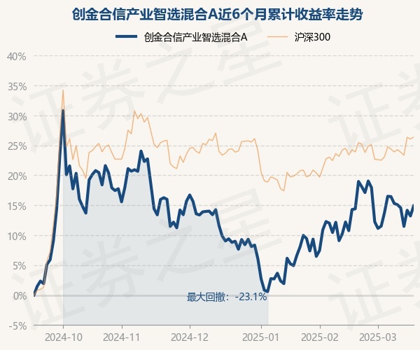 证券之星消息,3月18日,创金合信产业智选混合A最新单位净值为0.4821元,累计净值为0.4821元,较前一交易日上涨1.49%。历史数据显示该基金近1个月上涨3.74%,近3个月上涨5.03%,近6个月上涨14.9%,近1年下跌8.93%。该基金近6个月的累计收益率走势如下图: