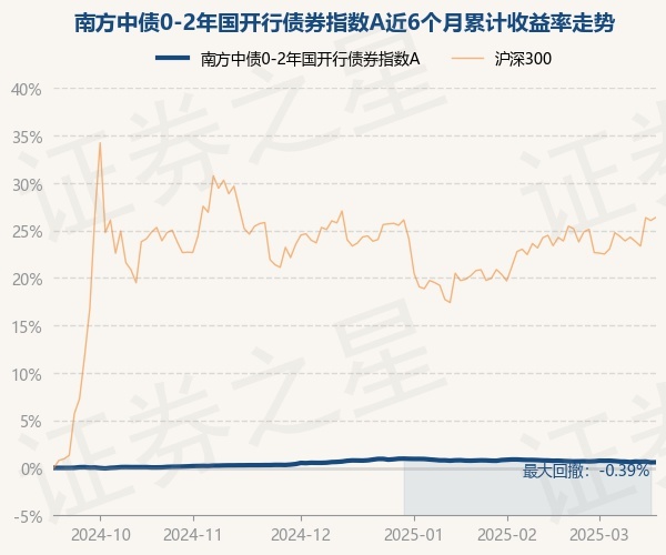 证券之星消息,3月18日,南方中债0-2年国开行债券指数A最新单位净值为1.0241元,累计净值为1.1191元,较前一交易日上涨0.01%。历史数据显示该基金近1个月下跌0.16%,近3个月下跌0.18%,近6个月上涨0.59%,近1年上涨1.92%。该基金近6个月的累计收益率走势如下图: