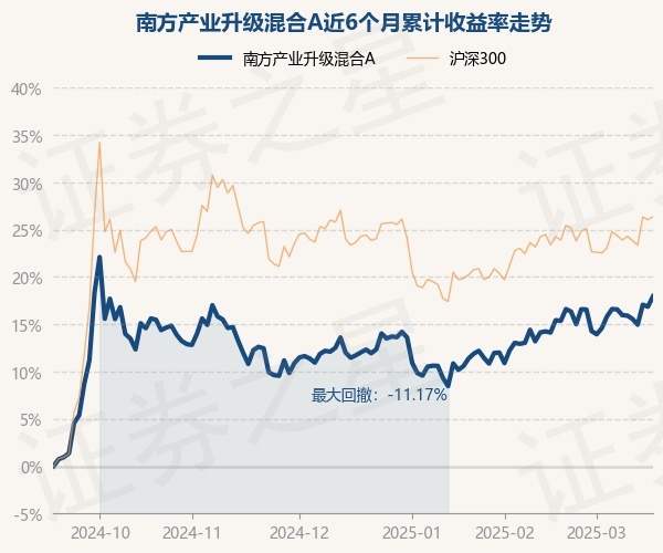 证券之星消息,3月18日,南方产业升级混合A最新单位净值为0.6997元,累计净值为0.6997元,较前一交易日上涨0.94%。历史数据显示该基金近1个月上涨3.35%,近3个月上涨5.28%,近6个月上涨17.95%,近1年上涨5.92%。该基金近6个月的累计收益率走势如下图:
