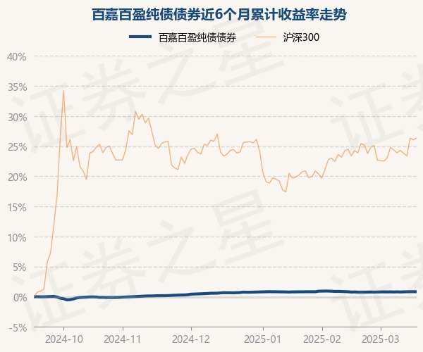 证券之星消息,3月18日,百嘉百盈纯债债券最新单位净值为1.0087元,累计净值为1.0595元,较前一交易日下跌0.01%。历史数据显示该基金近1个月上涨0.05%,近3个月上涨0.16%,近6个月上涨0.83%,近1年上涨2.61%。该基金近6个月的累计收益率走势如下图:
