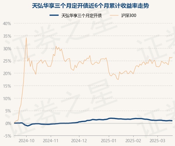证券之星消息,3月18日,天弘华享三个月定开债最新单位净值为1.0392元,累计净值为1.213元,较前一交易日上涨0.0%。历史数据显示该基金近1个月下跌0.55%,近3个月下跌0.32%,近6个月上涨0.99%,近1年上涨3.16%。该基金近6个月的累计收益率走势如下图: