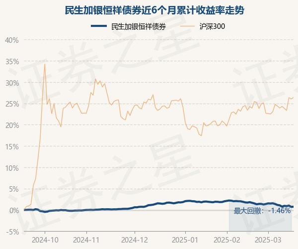 证券之星消息,3月18日,民生加银恒祥债券最新单位净值为1.07元,累计净值为1.1055元,较前一交易日上涨0.03%。历史数据显示该基金近1个月下跌0.96%,近3个月下跌0.68%,近6个月上涨0.74%,近1年上涨2.85%。该基金近6个月的累计收益率走势如下图: