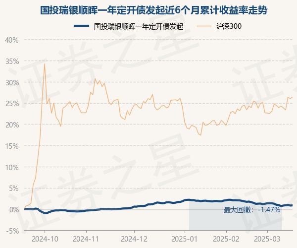 证券之星消息,3月18日,国投瑞银顺晖一年定开债发起最新单位净值为1.0572元,累计净值为1.0915元,较前一交易日上涨0.04%。历史数据显示该基金近1个月下跌0.83%,近3个月下跌0.51%,近6个月上涨0.87%,近1年上涨3.8%。该基金近6个月的累计收益率走势如下图: