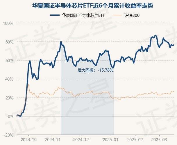 证券之星消息,3月18日,华夏国证半导体芯片ETF最新单位净值为1.3274元,累计净值为1.3274元,较前一交易日上涨0.56%。历史数据显示该基金近1个月上涨4.44%,近3个月上涨11.39%,近6个月上涨76.68%,近1年上涨45.44%。该基金近6个月的累计收益率走势如下图: