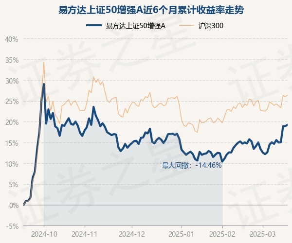 证券之星消息,3月18日,易方达上证50增强A最新单位净值为1.9052元,累计净值为3.8952元,较前一交易日上涨0.23%。历史数据显示该基金近1个月上涨3.93%,近3个月上涨2.72%,近6个月上涨19.25%,近1年上涨7.23%。该基金近6个月的累计收益率走势如下图: