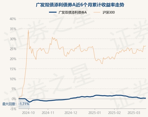 证券之星消息,3月18日,广发双债添利债券A最新单位净值为1.2183元,累计净值为1.6508元,较前一交易日上涨0.02%。历史数据显示该基金近1个月下跌1.13%,近3个月下跌0.66%,近6个月上涨0.22%,近1年上涨3.44%。该基金近6个月的累计收益率走势如下图: