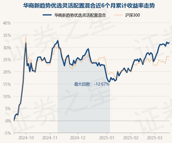 证券之星消息,3月18日,华商新趋势优选灵活配置混合最新单位净值为10.509元,累计净值为10.509元,较前一交易日上涨0.37%。历史数据显示该基金近1个月上涨7.32%,近3个月上涨6.73%,近6个月上涨31.94%,近1年上涨13.38%。该基金近6个月的累计收益率走势如下图: