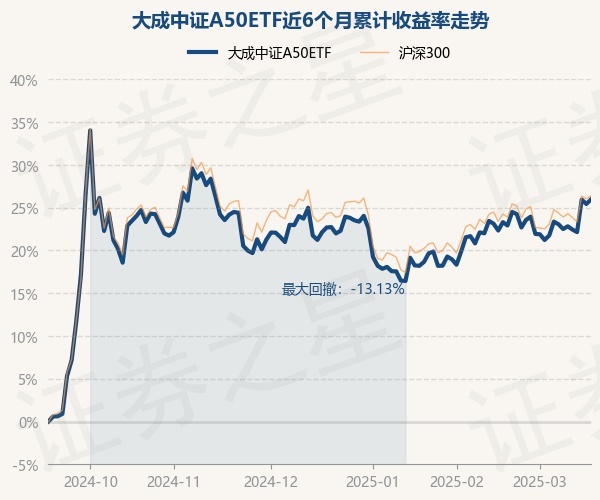 证券之星消息,3月18日,大成中证A50ETF最新单位净值为1.1785元,累计净值为1.1785元,较前一交易日上涨0.42%。历史数据显示该基金近1个月上涨2.96%,近3个月上涨2.67%,近6个月上涨25.95%,近1年上涨16.13%。该基金近6个月的累计收益率走势如下图: