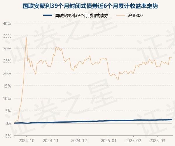 证券之星消息,3月18日,国联安聚利39个月封闭式债券最新单位净值为1.0093元,累计净值为1.0632元,较前一交易日上涨0.02%。历史数据显示该基金近1个月上涨0.21%,近3个月上涨0.63%,近6个月上涨1.39%,近1年上涨3.19%。该基金近6个月的累计收益率走势如下图: