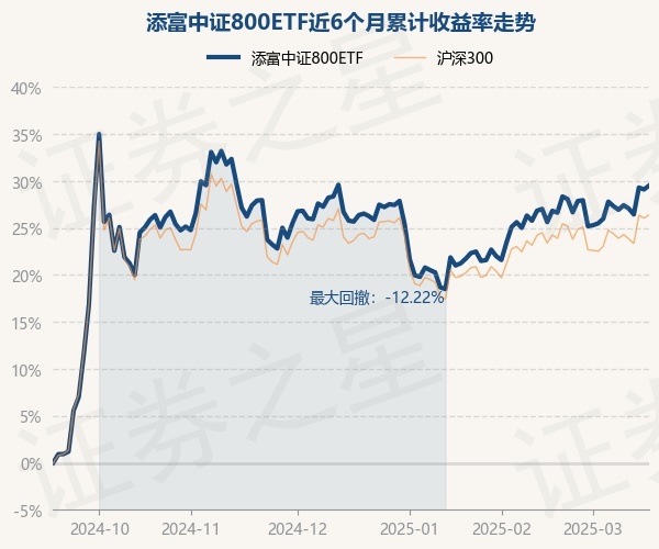 证券之星消息,3月18日,添富中证800ETF最新单位净值为1.0467元,累计净值为1.1587元,较前一交易日上涨0.32%。历史数据显示该基金近1个月上涨3.09%,近3个月上涨2.49%,近6个月上涨29.51%,近1年上涨14.11%。该基金近6个月的累计收益率走势如下图: