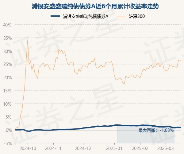 证券之星消息,3月18日,浦银安盛盛瑞纯债债券A最新单位净值为1.0543元,累计净值为1.1033元,较前一交易日上涨0.04%。历史数据显示该基金近1个月下跌0.53%,近3个月下跌0.41%,近6个月上涨0.89%,近1年上涨3.07%。该基金近6个月的累计收益率走势如下图: