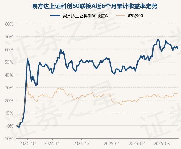 证券之星消息,3月19日,易方达上证科创50联接A最新单位净值为0.8366元,累计净值为0.8366元,较前一交易日下跌1.15%。历史数据显示该基金近1个月上涨3.78%,近3个月上涨7.91%,近6个月上涨60.05%,近1年上涨30.13%。该基金近6个月的累计收益率走势如下图: