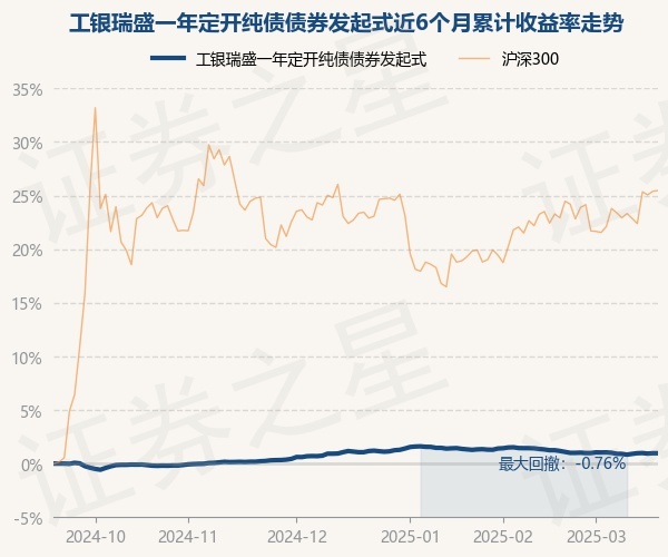 证券之星消息,3月19日,工银瑞盛一年定开纯债债券发起式最新单位净值为1.1485元,累计净值为1.1485元,较前一交易日上涨0.0%。历史数据显示该基金近1个月下跌0.25%,近3个月下跌0.07%,近6个月上涨0.99%,近1年上涨3.13%。该基金近6个月的累计收益率走势如下图: