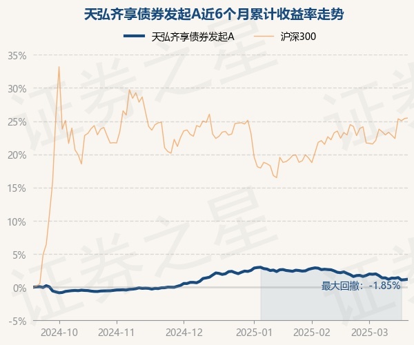 证券之星消息,3月19日,天弘齐享债券发起A最新单位净值为1.0549元,累计净值为1.1385元,较前一交易日上涨0.07%。历史数据显示该基金近1个月下跌1.09%,近3个月下跌0.81%,近6个月上涨1.19%,近1年上涨3.29%。该基金近6个月的累计收益率走势如下图: