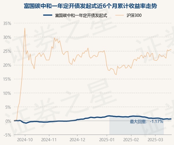 证券之星消息,3月19日,富国碳中和一年定开债发起式最新单位净值为1.0274元,累计净值为1.085元,较前一交易日上涨0.04%。历史数据显示该基金近1个月下跌0.69%,近3个月下跌0.44%,近6个月上涨0.64%,近1年上涨3.26%。该基金近6个月的累计收益率走势如下图: