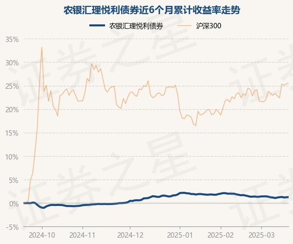 证券之星消息,3月19日,农银汇理悦利债券最新单位净值为1.0364元,累计净值为1.1234元,较前一交易日上涨0.04%。历史数据显示该基金近1个月下跌0.42%,近3个月下跌0.06%,近6个月上涨1.28%,近1年上涨3.93%。该基金近6个月的累计收益率走势如下图: