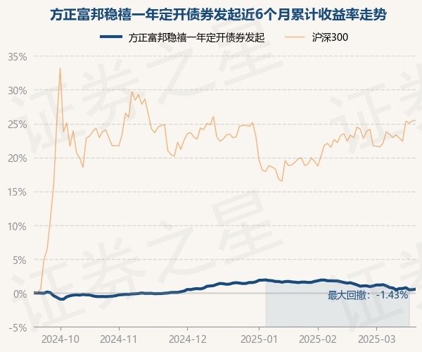 证券之星消息,3月19日,方正富邦稳禧一年定开债券发起最新单位净值为1.0202元,累计净值为1.0644元,较前一交易日上涨0.07%。历史数据显示该基金近1个月下跌0.93%,近3个月下跌0.75%,近6个月上涨0.56%,近1年上涨3.06%。该基金近6个月的累计收益率走势如下图: