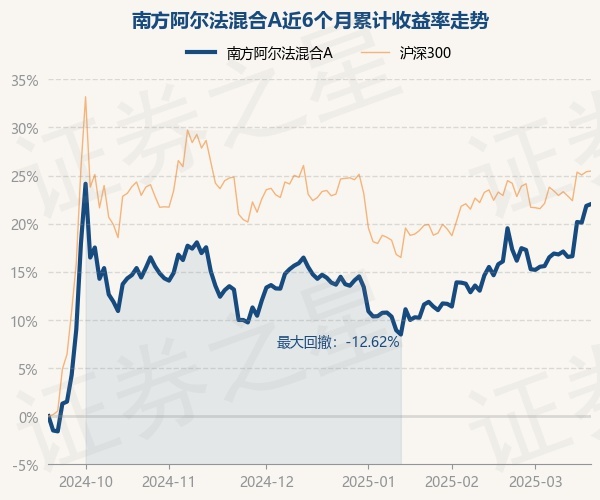 证券之星消息,3月19日,南方阿尔法混合A最新单位净值为0.5251元,累计净值为0.5251元,较前一交易日上涨0.15%。历史数据显示该基金近1个月上涨5.4%,近3个月上涨6.68%,近6个月上涨22.03%,近1年上涨11.39%。该基金近6个月的累计收益率走势如下图:
