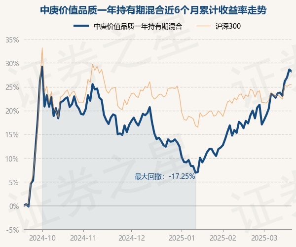 证券之星消息,3月19日,中庚价值品质一年持有期混合最新单位净值为1.6068元,累计净值为1.6068元,较前一交易日下跌0.3%。历史数据显示该基金近1个月上涨8.84%,近3个月上涨12.88%,近6个月上涨28.23%,近1年上涨16.47%。该基金近6个月的累计收益率走势如下图: