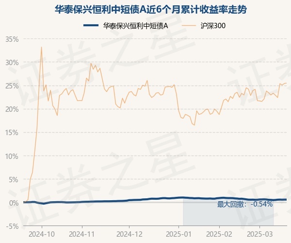 证券之星消息,3月19日,华泰保兴恒利中短债A最新单位净值为1.0145元,累计净值为1.0945元,较前一交易日上涨0.0%。历史数据显示该基金近1个月下跌0.17%,近3个月下跌0.18%,近6个月上涨0.59%,近1年上涨2.21%。该基金近6个月的累计收益率走势如下图: