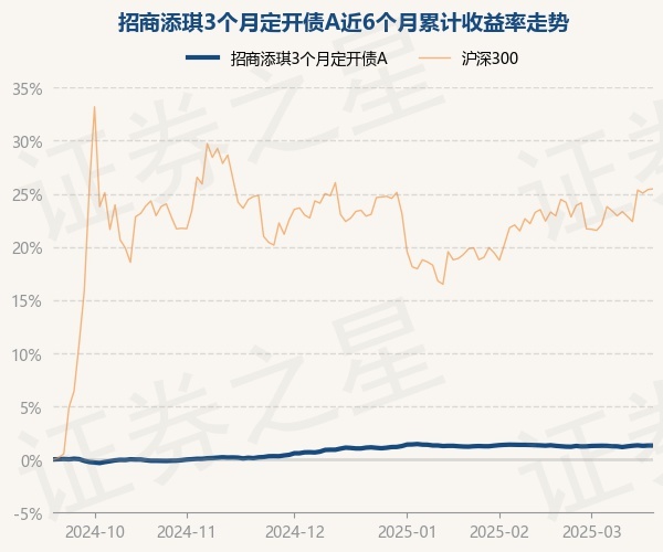 证券之星消息,3月19日,招商添琪3个月定开债A最新单位净值为1.0783元,累计净值为1.2598元,较前一交易日上涨0.0%。历史数据显示该基金近1个月上涨0.02%,近3个月上涨0.32%,近6个月上涨1.35%,近1年上涨3.43%。该基金近6个月的累计收益率走势如下图: