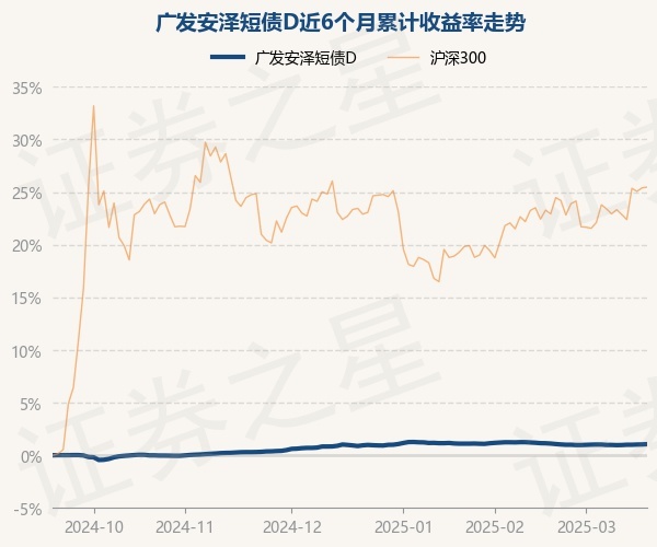 证券之星消息,3月19日,广发安泽短债D最新单位净值为1.074元,累计净值为1.102元,较前一交易日上涨0.03%。历史数据显示该基金近1个月下跌0.08%,近3个月上涨0.18%,近6个月上涨1.06%,近1年上涨2.75%。该基金近6个月的累计收益率走势如下图: