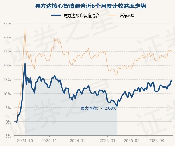 证券之星消息,3月19日,易方达核心智造混合最新单位净值为0.895元,累计净值为0.895元,较前一交易日下跌0.41%。历史数据显示该基金近1个月上涨1.94%,近3个月上涨2.98%,近6个月上涨14.01%,近1年上涨10.66%。该基金近6个月的累计收益率走势如下图: