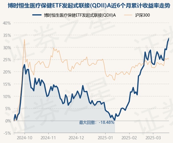 证券之星消息,3月19日,博时恒生医疗保健ETF发起式联接(QDII)A最新单位净值为0.7708元,累计净值为0.7708元,较前一交易日上涨1.05%。历史数据显示该基金近1个月上涨9.91%,近3个月上涨24.93%,近6个月上涨33.56%,近1年上涨26.71%。该基金近6个月的累计收益率走势如下图: