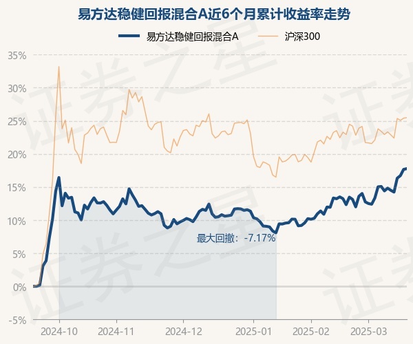 证券之星消息,3月19日,易方达稳健回报混合A最新单位净值为0.9139元,累计净值为0.9139元,较前一交易日上涨0.1%。历史数据显示该基金近1个月上涨4.01%,近3个月上涨6.49%,近6个月上涨17.77%,近1年上涨14.17%。该基金近6个月的累计收益率走势如下图:
