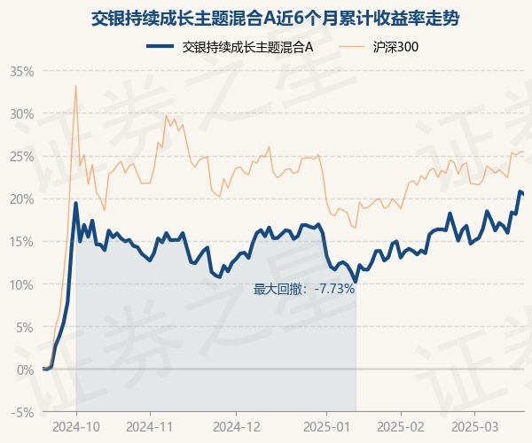 证券之星消息,3月19日,交银持续成长主题混合A最新单位净值为1.4354元,累计净值为1.5754元,较前一交易日下跌0.24%。历史数据显示该基金近1个月上涨3.56%,近3个月上涨3.76%,近6个月上涨20.49%,近1年上涨8.54%。该基金近6个月的累计收益率走势如下图: