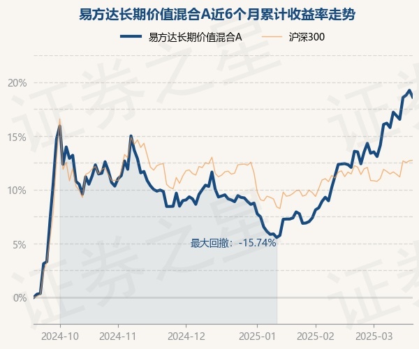证券之星消息,3月19日,易方达长期价值混合A最新单位净值为1.0014元,累计净值为1.0014元,较前一交易日下跌0.91%。历史数据显示该基金近1个月上涨10.08%,近3个月上涨16.01%,近6个月上涨37.23%,近1年上涨12.47%。该基金近6个月的累计收益率走势如下图: