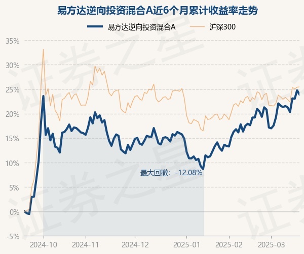 证券之星消息,3月19日,易方达逆向投资混合A最新单位净值为1.0253元,累计净值为1.0253元,较前一交易日下跌0.67%。历史数据显示该基金近1个月上涨3.98%,近3个月上涨7.61%,近6个月上涨23.93%,近1年上涨8.37%。该基金近6个月的累计收益率走势如下图: