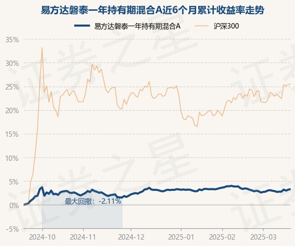 证券之星消息,3月19日,易方达磐泰一年持有期混合A最新单位净值为1.1914元,累计净值为1.1914元,较前一交易日上涨0.1%。历史数据显示该基金近1个月下跌0.15%,近3个月上涨0.37%,近6个月上涨3.29%,近1年上涨4.36%。该基金近6个月的累计收益率走势如下图: