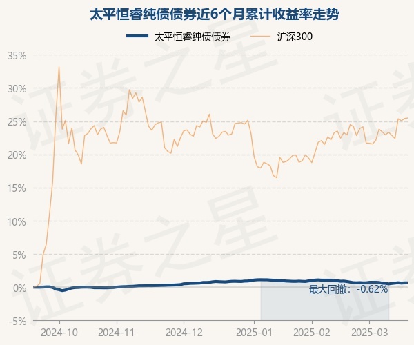 证券之星消息,3月19日,太平恒睿纯债债券最新单位净值为1.0801元,累计净值为1.1251元,较前一交易日上涨0.0%。历史数据显示该基金近1个月下跌0.21%,近3个月下跌0.08%,近6个月上涨0.7%,近1年上涨2.43%。该基金近6个月的累计收益率走势如下图:
