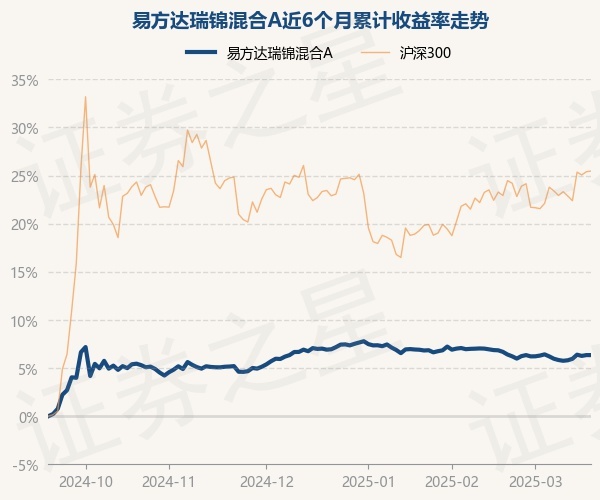 证券之星消息,3月19日,易方达瑞锦混合A最新单位净值为1.2658元,累计净值为1.3058元,较前一交易日上涨0.0%。历史数据显示该基金近1个月下跌0.19%,近3个月下跌0.25%,近6个月上涨6.64%,近1年上涨8.95%。该基金近6个月的累计收益率走势如下图: