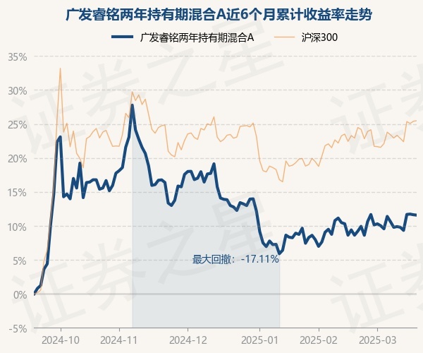 证券之星消息,3月19日,广发睿铭两年持有期混合A最新单位净值为0.9588元,累计净值为0.9588元,较前一交易日下跌0.05%。历史数据显示该基金近1个月上涨1.99%,近3个月下跌1.25%,近6个月上涨11.58%,近1年上涨8.88%。该基金近6个月的累计收益率走势如下图: