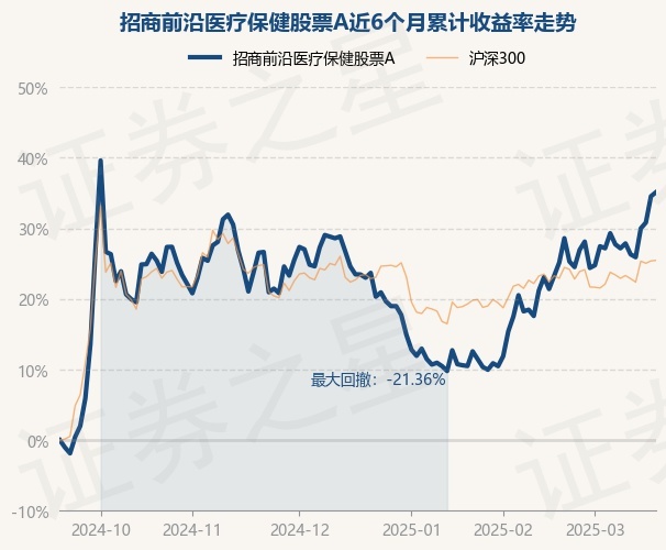 证券之星消息,3月19日,招商前沿医疗保健股票A最新单位净值为0.5339元,累计净值为0.5339元,较前一交易日上涨0.43%。历史数据显示该基金近1个月上涨9.61%,近3个月上涨9.86%,近6个月上涨35.13%,近1年上涨2.18%。该基金近6个月的累计收益率走势如下图:
