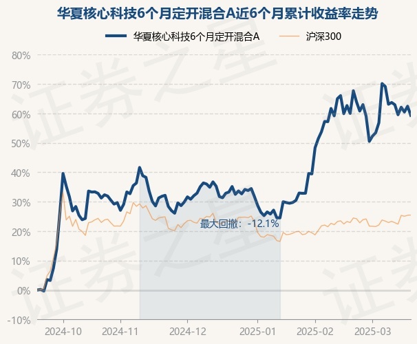 证券之星消息,3月19日,华夏核心科技6个月定开混合A最新单位净值为0.9535元,累计净值为0.9535元,较前一交易日下跌1.93%。历史数据显示该基金近1个月下跌2.06%,近3个月上涨19.53%,近6个月上涨59.31%,近1年上涨30.58%。该基金近6个月的累计收益率走势如下图: