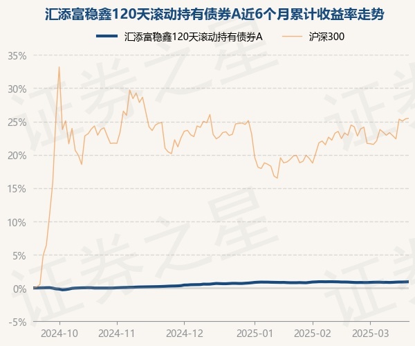 证券之星消息,3月19日,汇添富稳鑫120天滚动持有债券A最新单位净值为1.1156元,累计净值为1.1156元,较前一交易日上涨0.02%。历史数据显示该基金近1个月上涨0.04%,近3个月上涨0.29%,近6个月上涨0.93%,近1年上涨2.23%。该基金近6个月的累计收益率走势如下图: