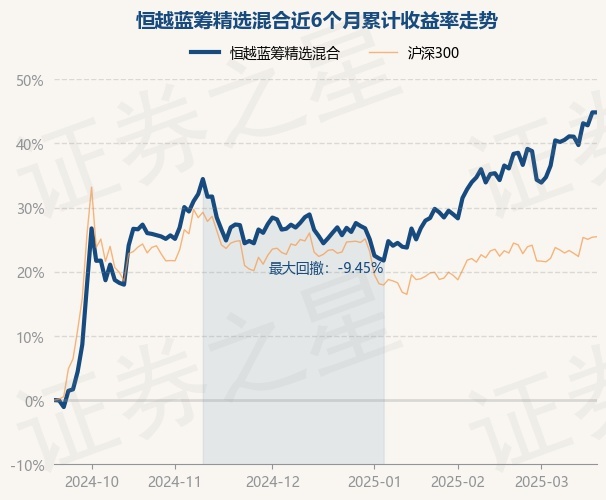 证券之星消息,3月19日,恒越蓝筹精选混合最新单位净值为0.9473元,累计净值为0.9473元,较前一交易日上涨0.0%。历史数据显示该基金近1个月上涨5.76%,近3个月上涨14.53%,近6个月上涨44.43%,近1年上涨30.48%。该基金近6个月的累计收益率走势如下图: