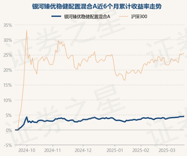 证券之星消息,3月19日,银河臻优稳健配置混合A最新单位净值为1.096元,累计净值为1.133元,较前一交易日上涨0.01%。历史数据显示该基金近1个月上涨0.71%,近3个月上涨0.58%,近6个月上涨4.46%,近1年上涨4.29%。该基金近6个月的累计收益率走势如下图:
