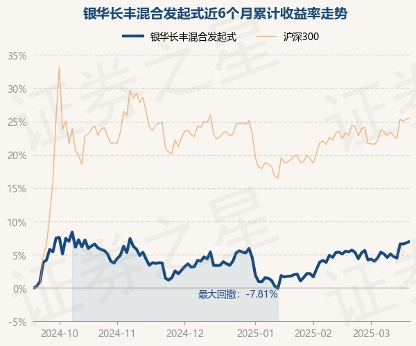 证券之星消息,3月19日,银华长丰混合发起式最新单位净值为1.4604元,累计净值为1.4604元,较前一交易日上涨0.19%。历史数据显示该基金近1个月上涨1.38%,近3个月上涨3.22%,近6个月上涨6.99%,近1年上涨14.04%。该基金近6个月的累计收益率走势如下图: