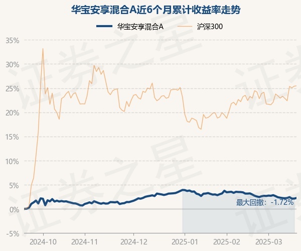 证券之星消息,3月19日,华宝安享混合A最新单位净值为1.1311元,累计净值为1.1311元,较前一交易日上涨0.12%。历史数据显示该基金近1个月下跌0.92%,近3个月下跌0.61%,近6个月上涨2.26%,近1年上涨3.35%。该基金近6个月的累计收益率走势如下图: