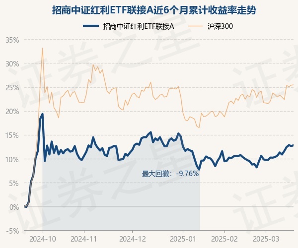 证券之星消息,3月19日,招商中证红利ETF联接A最新单位净值为1.0893元,累计净值为1.1423元,较前一交易日上涨0.14%。历史数据显示该基金近1个月上涨2.84%,近3个月下跌0.59%,近6个月上涨12.82%,近1年上涨5.78%。该基金近6个月的累计收益率走势如下图: