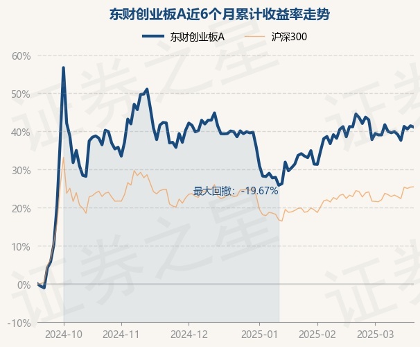 证券之星消息,3月19日,东财创业板A最新单位净值为1.3421元,累计净值为1.3421元,较前一交易日下跌0.25%。历史数据显示该基金近1个月下跌0.1%,近3个月上涨0.72%,近6个月上涨41.11%,近1年上涨17.45%。该基金近6个月的累计收益率走势如下图: