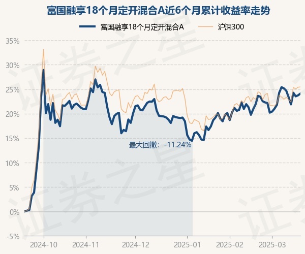 证券之星消息,3月19日,富国融享18个月定开混合A最新单位净值为1.1375元,累计净值为1.4075元,较前一交易日上涨0.29%。历史数据显示该基金近1个月上涨2.62%,近3个月上涨4.09%,近6个月上涨24.1%,近1年上涨14.62%。该基金近6个月的累计收益率走势如下图: